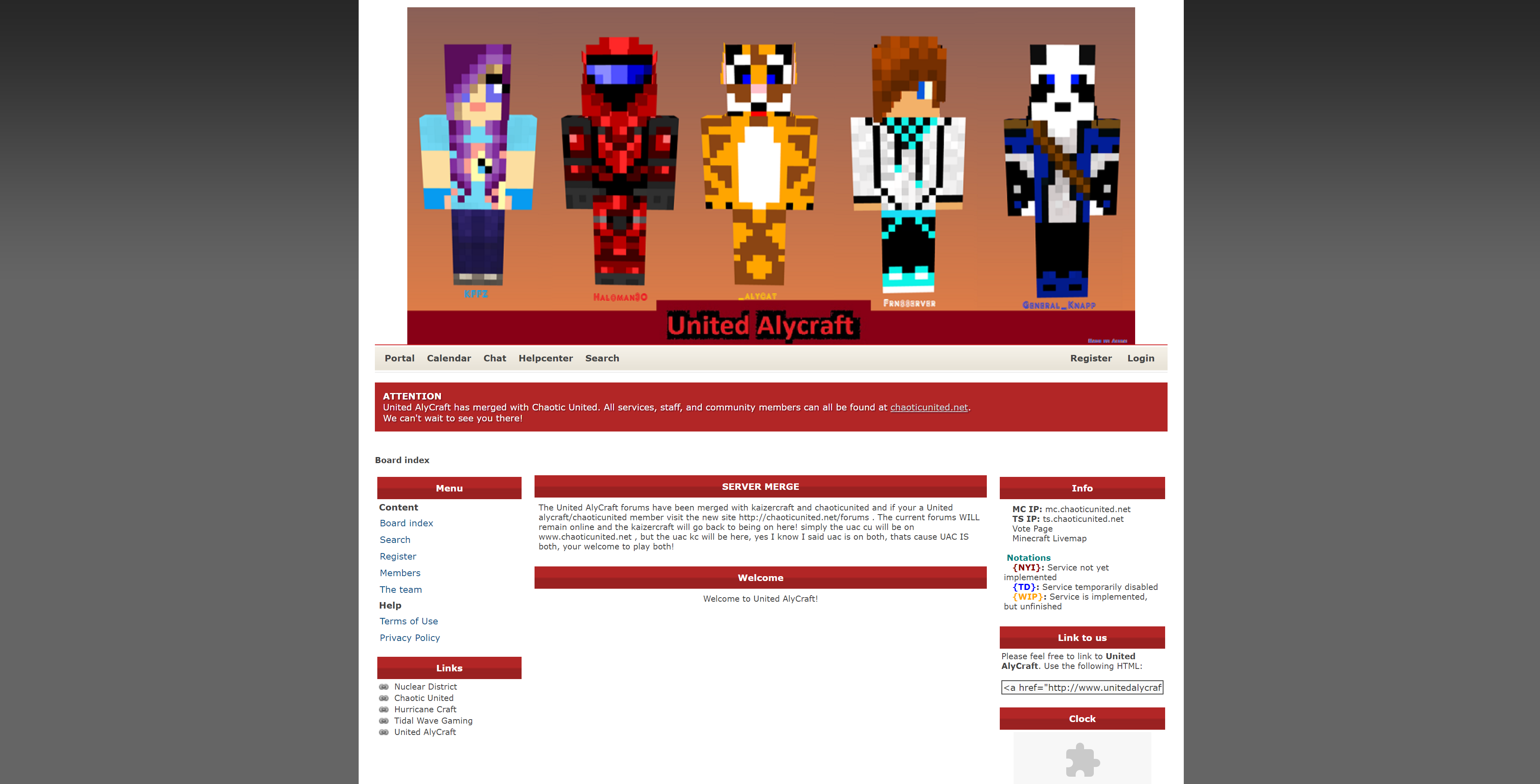Over the years, it managed to build a small but loyal community, which remained around until United AlyCraft merged into Chaotic United and ceased independent operations - with some members following over after the merge.